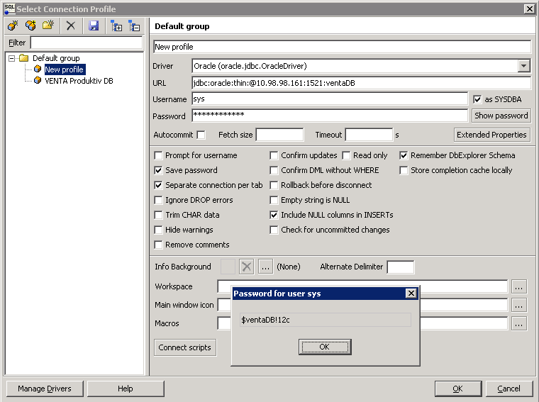 ·         sys / $ventaDB!12c, siehe Anhang 2